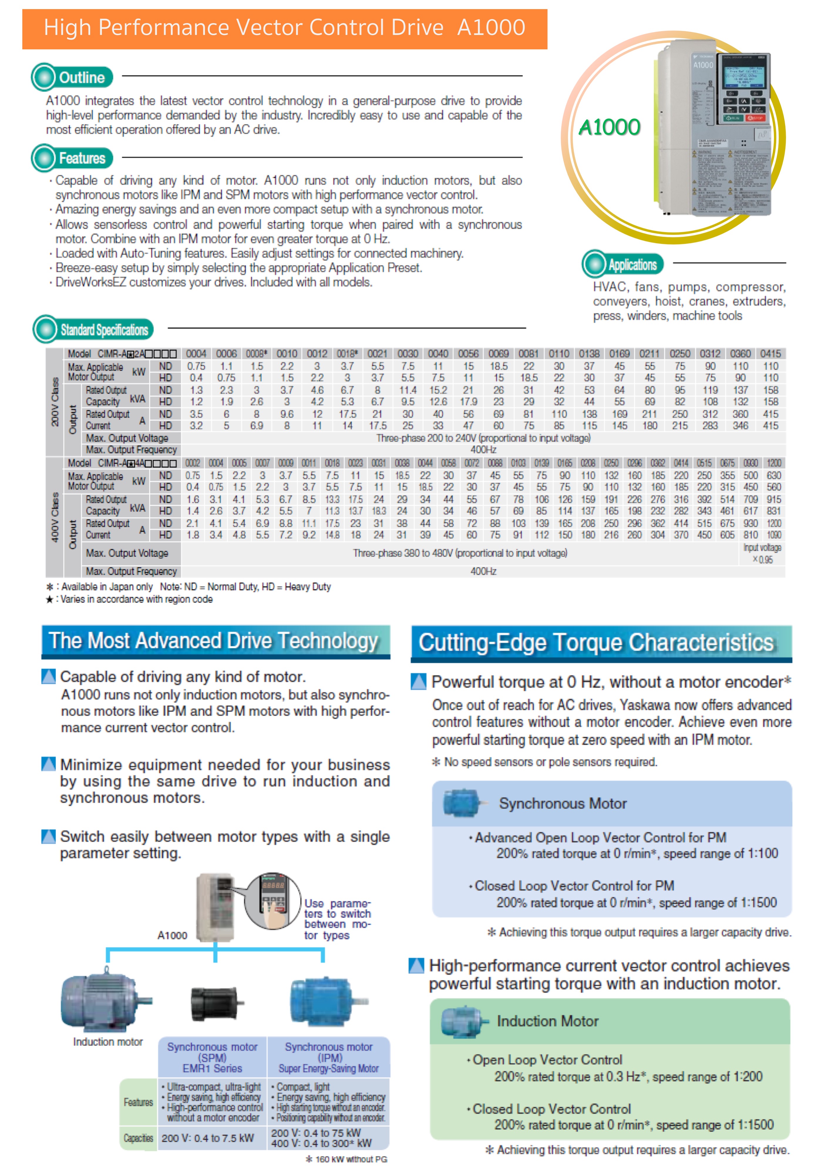 High Performance Vector Control Drive A1000